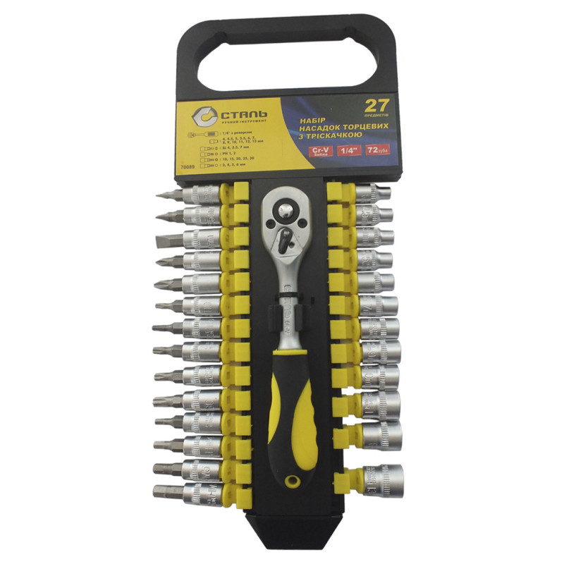 (70089) Набір головок та насадок торц. з тріскачкою 1/4", 27 од. СТАЛЬ купить по оптовой цене с доставкой в магазине Ellada.com.ua