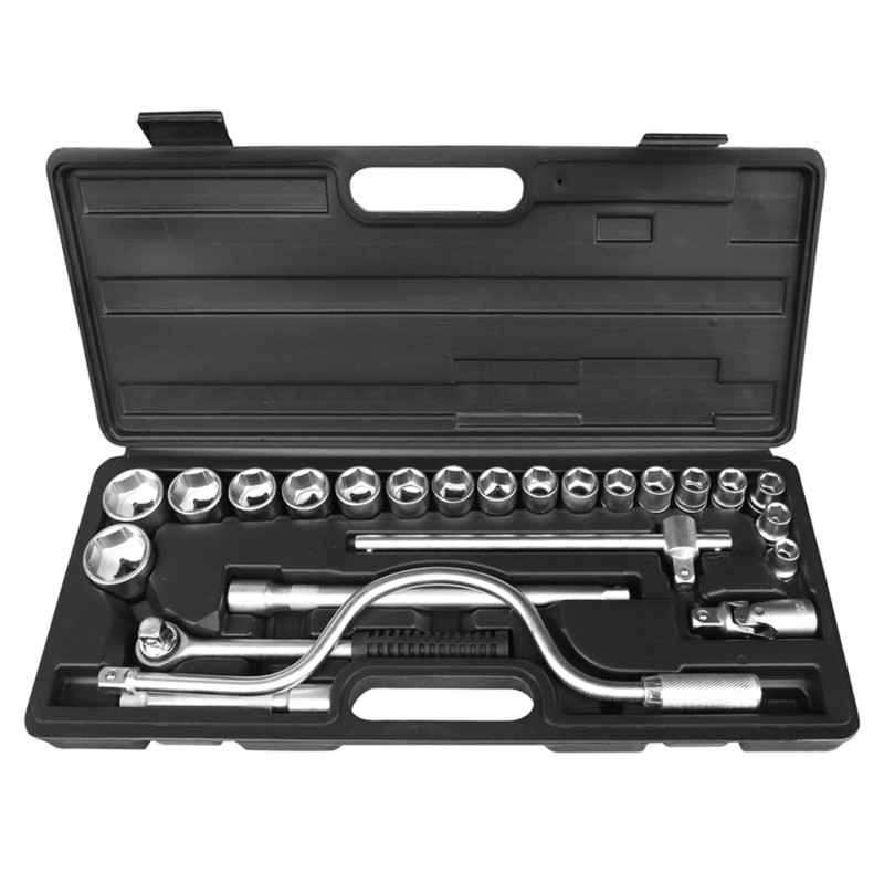 Турбощетка - 1 шт, 1/2"Удлинитель - 2 шт, 1/2": 125, 250 ммСоединитель - 1 шт, 1/2"Торцевые головки - 18 шт, 1/2": 10, 11, 12, 13, 14, 15, 16, 17, 18, 19, 20, 21, 22, 23, 24, 27, 30, 32 ммВороток коленчатый - 1 шт, 1/2"Вороток - 1 шт, 1/2"