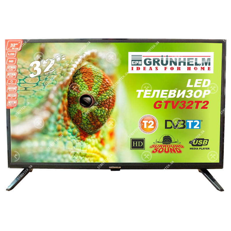 Grunhelm GTV32HD01T2 32 дюйма 1366х768 HD Телевизор купить по оптовой цене с доставкой в магазине Ellada.com.ua
