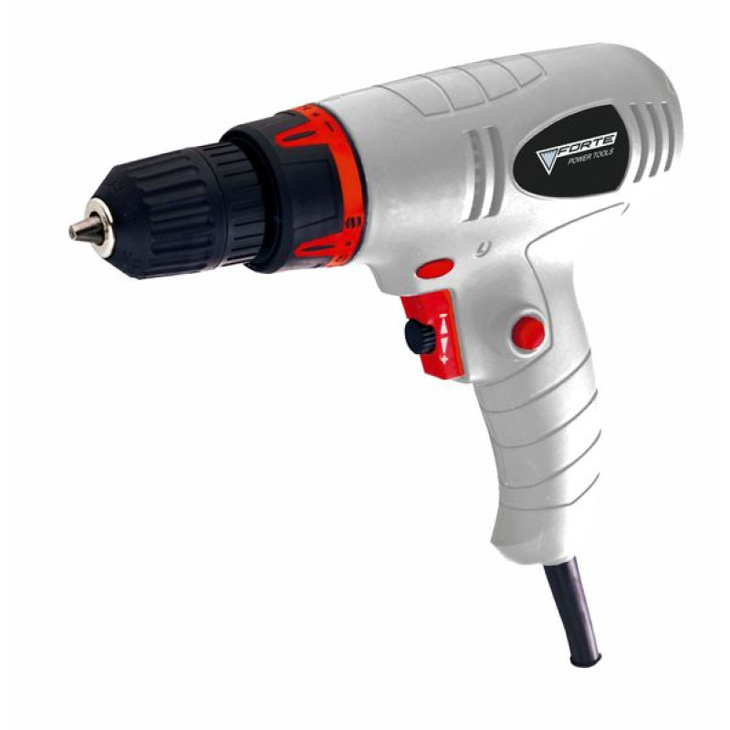 Forte DS 400 VR Дрель-шуруповерт Forte DS 400 VR - компактный, надежный, мощный инструмент, на который можно положиться. Всегда работает с предельной точностью независимо от материала. Дрель оснащена быстрозажимным патроном, с помощью которого можно легко и быстро сменить сверло и кольцом выбора крутящего момента. Идеально подходит для заворачивания шурупов.