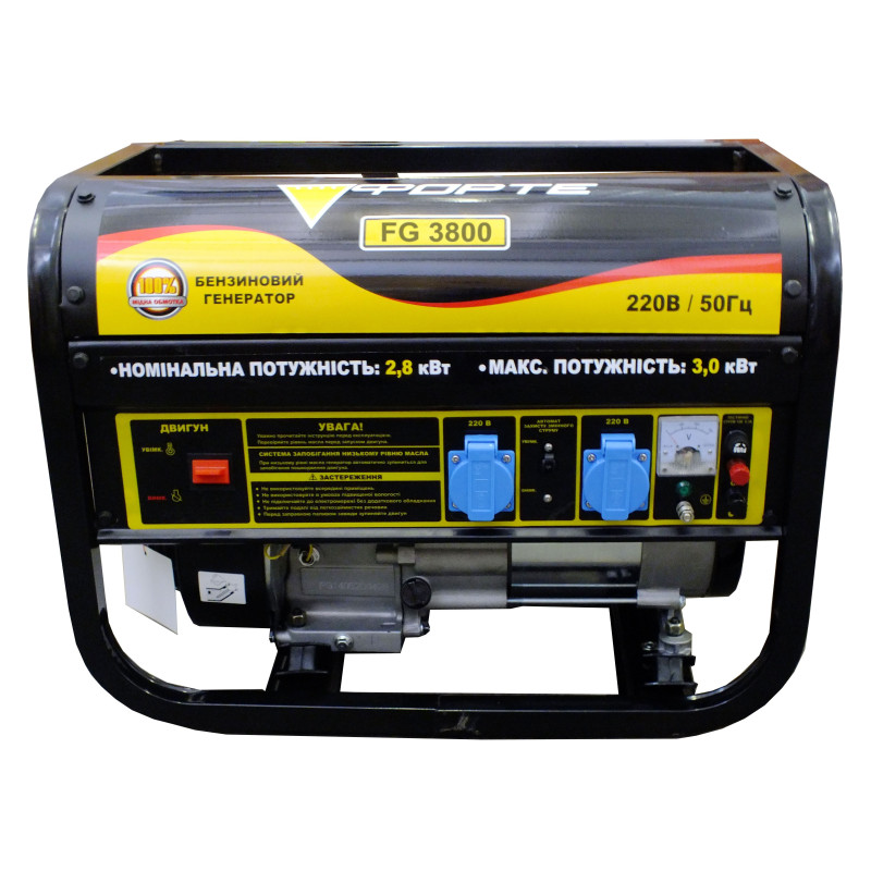 Forte FG3800 Электрогенератор Однофазный бензиновый генератор Forte FG3800 - профессиональный аппарат, который предназначен, как для основных, так и для резервных источников электроэнергии, для питания потребителей в сельском хозяйстве, в медицинских и образовательных учреждениях, в бытовых условиях, в местах, где нет линий электропередач или отключено электричество.