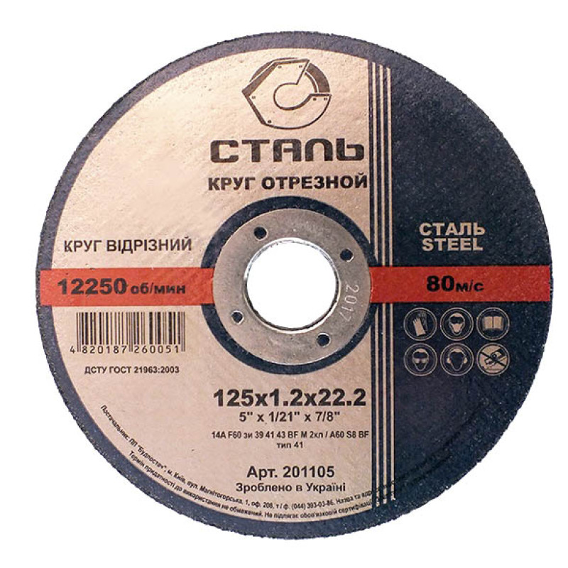 Круг отрезной по металлу - 125х1,2х22,23мм (СТАЛЬ) купить по оптовой цене с доставкой в магазине Ellada.com.ua