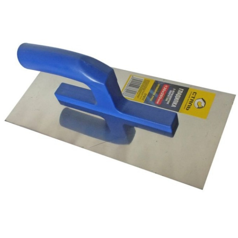 Сталь 37017 Гладилка с нержавеющим покрытием 130х280 мм Гладилка с нержавеющим покрытием 130х280 мм Сталь - используется в отделочных работах предназначена для быстрого равномерного нанесения, распределения и разравнивания на вертикальных и горизонтальных поверхностях строительных смесей и цемента. Полотно гладкое и ровное, выполнено из специальной нержавеющей стали. Удобная пластиковая ручка обеспечивает надежный стабильный хват и облегчает рабочий процесс. Изделие является легким, износостойким, легко отчищающимся от загрязнений и остатков рабочего материала.