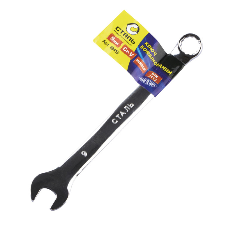Ключ комбинированный зеркальный 48455 Сталь 9 мм купить по оптовой цене с доставкой в магазине Ellada.com.ua