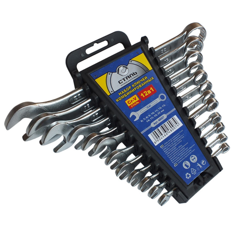 (48007)Набор ключей комбинированных -CRV12 шт.мат, пласт упак (СТАЛЬ)