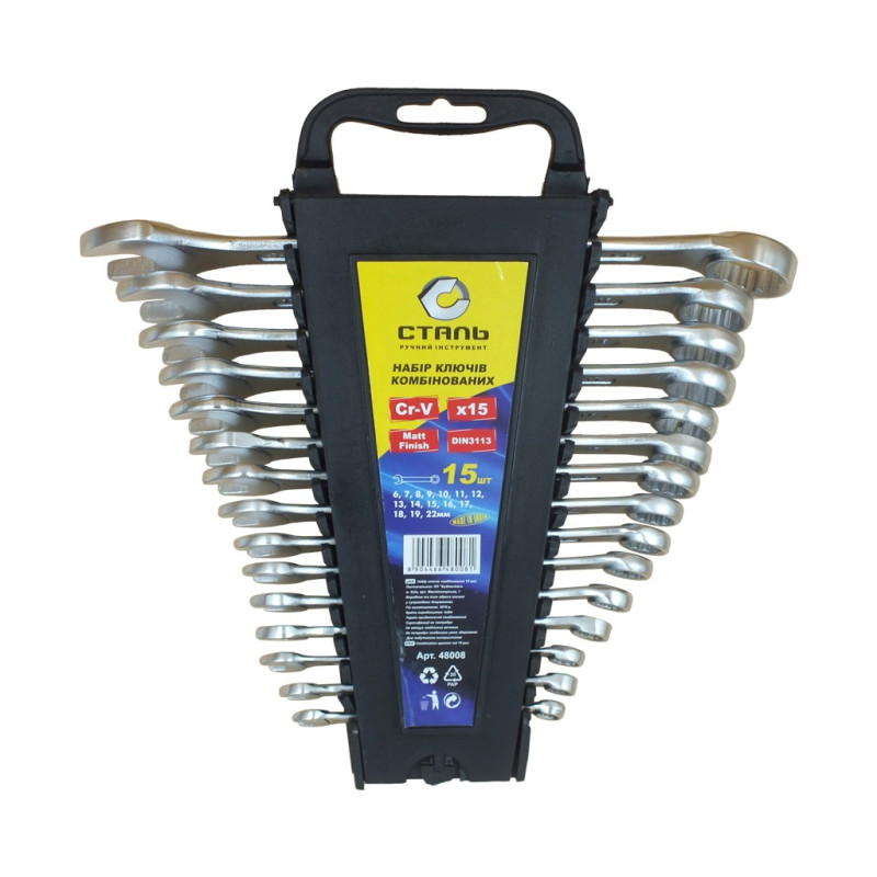 (48008)Набор ключей комбинированных -CRV15 шт.мат, пласт упак (СТАЛЬ) купить по оптовой цене с доставкой в магазине Ellada.com.ua