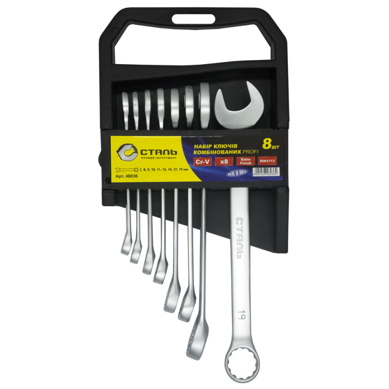 (48036) Набір ключів комбінованих 8 шт CRV, сатин СТАЛЬ купить по оптовой цене с доставкой в магазине Ellada.com.ua