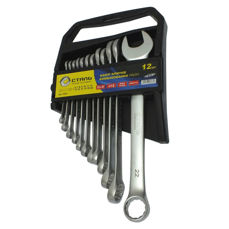 (48037) Набір ключів комбінованих 12 шт CRV, сатин СТАЛЬ купить по оптовой цене с доставкой в магазине Ellada.com.ua