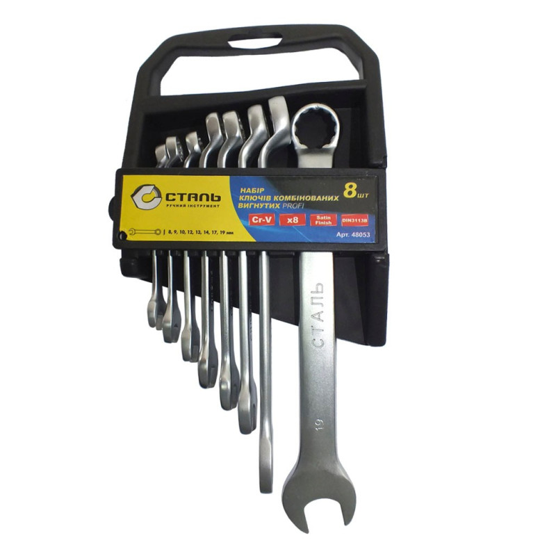 (48053) Набір ключів комбінованих вигнутих 8шт, CR-V, сатін СТАЛЬ купить по оптовой цене с доставкой в магазине Ellada.com.ua