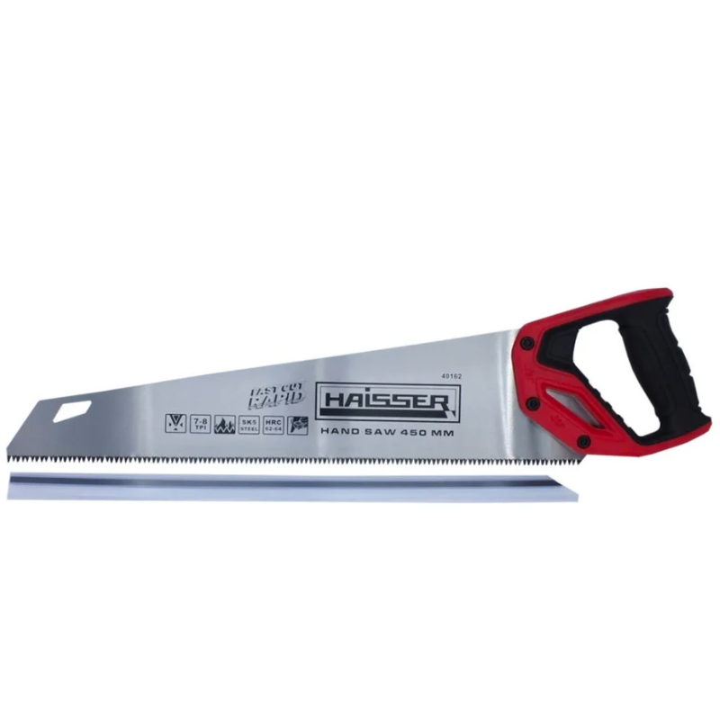 Ножовка по дереву Haisser двухкомпонентная рукоятка 7TPI 3D 450 мм Полотно из высококачественной инструментальной стали SK5. Двойная закалка позволяет делать пропилы как вдоль, так и поперек волокон, обеспечивая максимальную скорость пиления. Закалка зубьев значительно повышает износостойкость. Материал рукоятки - ABS пластик.