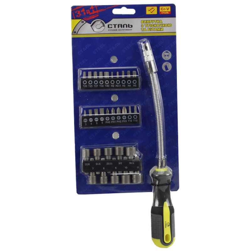 Сталь 49060 Отвертка с трещоткой и гибким валом 180 мм (31 шт) купить по оптовой цене с доставкой в магазине Ellada.com.ua