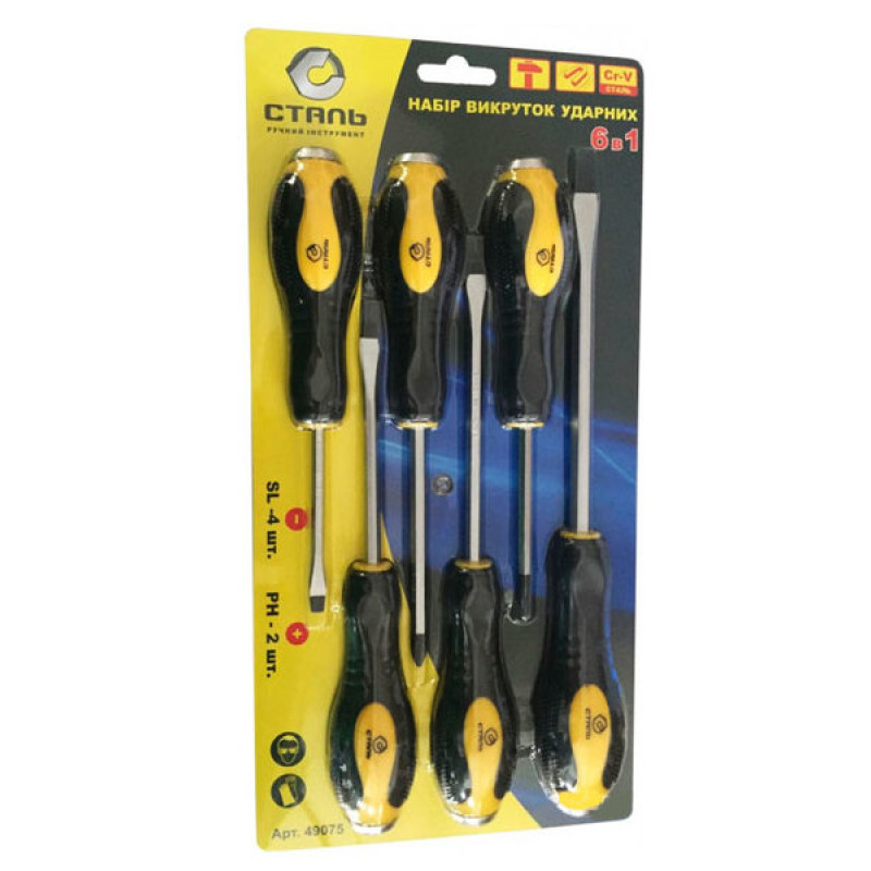 Сталь 49075 Набор отверток ударных 6 шт купить по оптовой цене с доставкой в магазине Ellada.com.ua