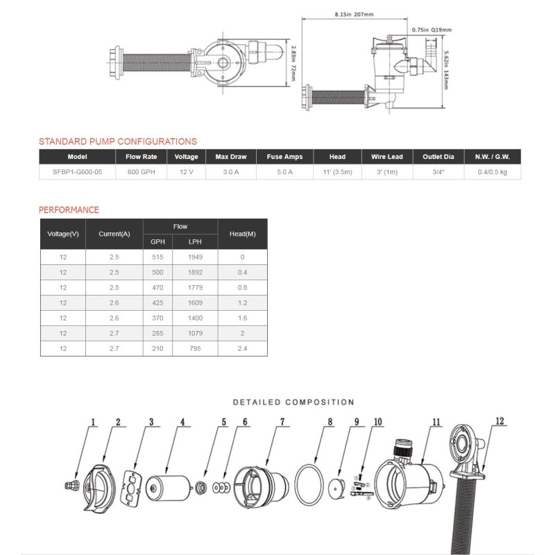Аэратор горизонтальный 600GPHSFBP1-G600-05 SEAFLO