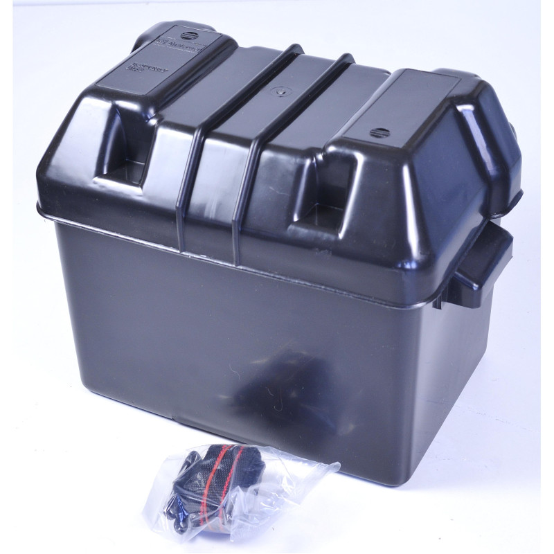 Характеристики:Тип изделия: аккумуляторный ящик с ремнемМатериал: пластикРазмер наружный (мм): 280х196х200 (д/ш/в) +70 крышкаРазмер внутренний (мм): 277х193х197 (д/ш/в) +67 крышкаКомплектуется стягивающим ремнемЦвет: черный