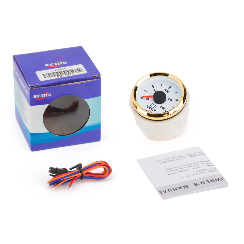 Вольтметр ECMS HMV2-WG-8-16 диаметр 52мм, рамка — золото, дисплей — белый купить по оптовой цене с доставкой в магазине Ellada.com.ua