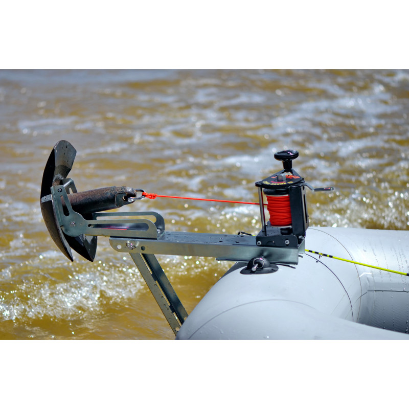Характеристики:Тип изделия: ручная якорная лебедкаМатериал: стальВес (кг): 5Максимально допустимый вес якоря (кг): 10Длина лодки, до (м): 4Капроновый трос (м): 30Диаметр капронового троса (мм): 3,5Усилие на разрыв капронового троса (кг): 360Максимальная рабочая нагрузка лебедки (кг): 70Размер лебедки (мм): 110х110х160 (д/ш/в)Размеры роульса (мм): 260х82х129 (д/ш/в)В комплекте лебедки поставляются крепежные оцинкованные болты и гайки для крепления корпуса лебедки и роульса.Якорная лебедка включает в себя роульс и саму лебедку. Использование якорной лебедки без штатного роульса запрещено!