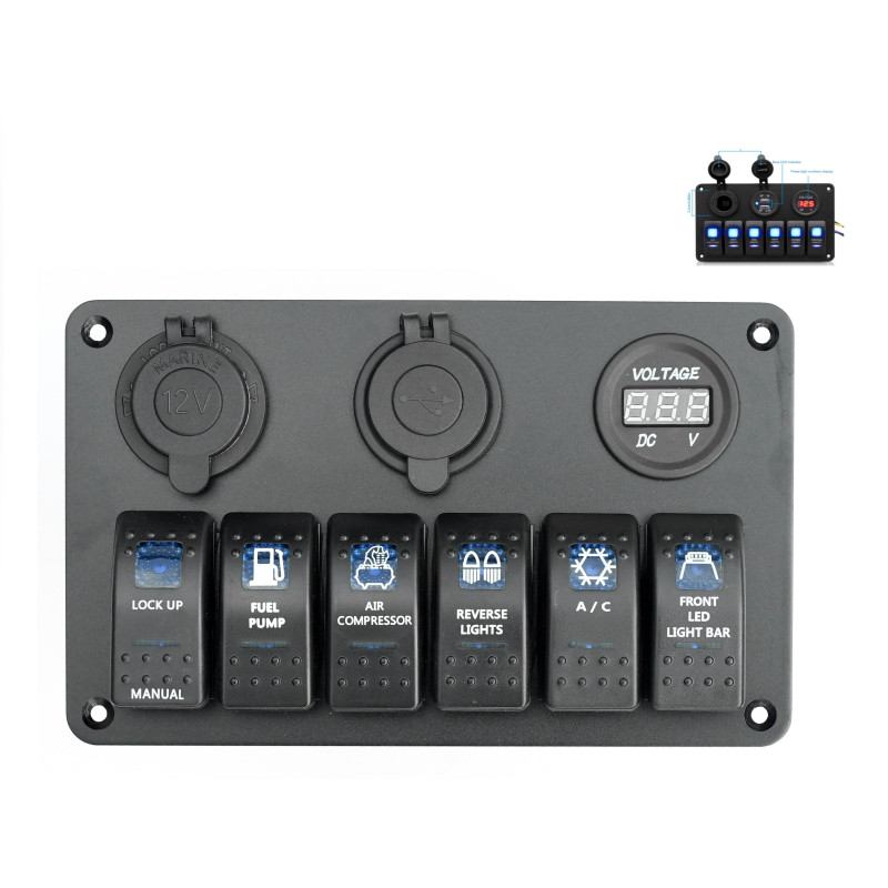 Панель переключения на 6 кнопок с вольметром, USB и прикуривателемкод товара 8 YuJ