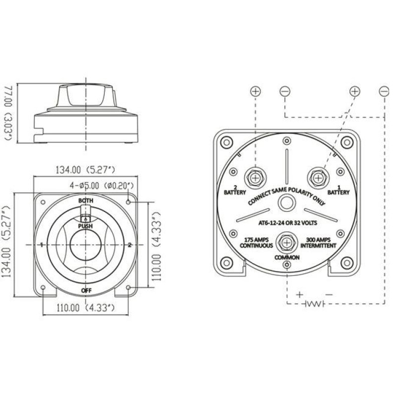Переключатель массы Seaflo SFCBS-175-402Переключатель позволяет использовать один аккумулятордля запуска двигателя, а другой для питания всего оборудования.Аккумуляторы также могут быть включены параллельно в случаенеобходимости, путем перевода переключателя в режим (BOTH)Постоянный ток 175А, пиковый 300А.