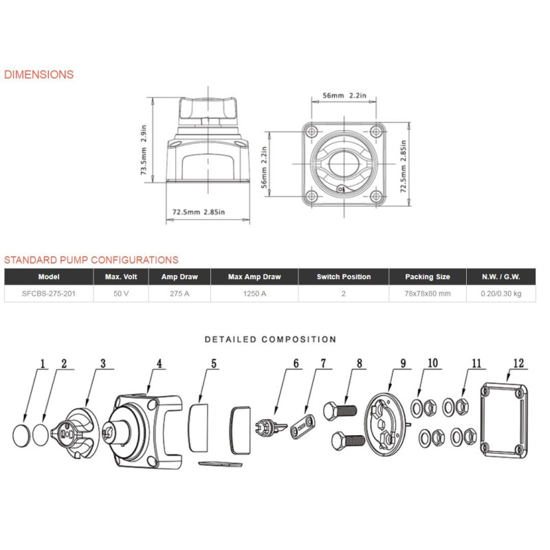 Переключатель массы SFCBS-275-201 SEAFLO