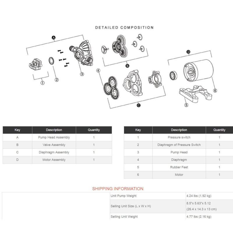 Диафрагмовая помпа SFDP1-030-045-33 SEAFLO11,6 литров в минутувысота столба 2 метра или давление 45PSiвозможна сухая работаавтоматическое включение при падении давления
