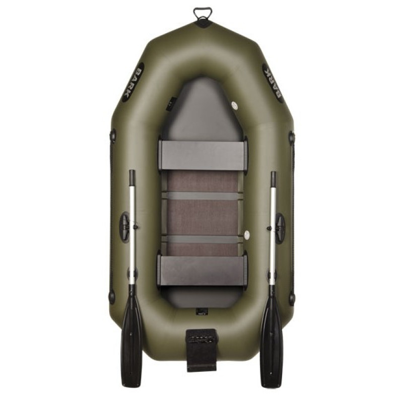 Навесной транец утяжеляет комплект этой лодки лишь на 2кг сравнительно с лодкой B-230 книжка. Зато использование мотора до 2,2л.с. намного облегчает преодоление довольно больших расстояний. Лодка остается вполне комфортабельной для двоих даже при размещении в ней бака с топливом или аккумулятора. Эта гребная лодка хороша и для рыбалки (в том числе методом троллинга), и для охоты, и для долгих водных прогулок, а также для дайвинга. Без мотора хороша также для туристского сплава по рекам 1 и 2 категории сложности (с относительно невысокими порогами, каменистыми шиверами, со стоячими волнами).В комплект поставки входит: