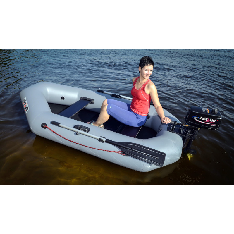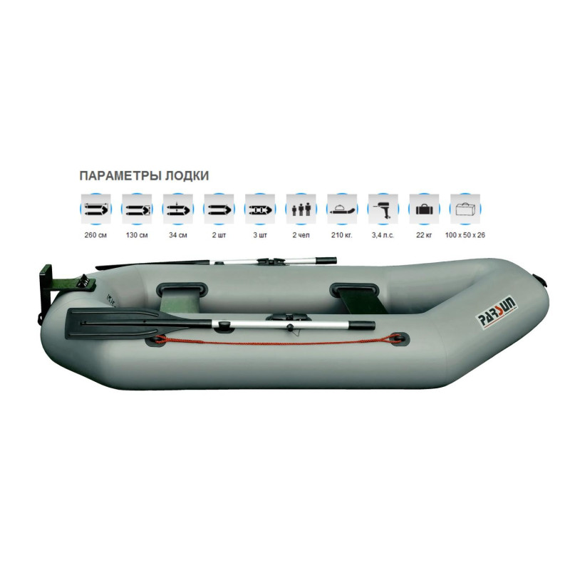 Надувная лодка Parsun 260t, выполнена по строгим стандартам и требованиям, данный тип лодок пользуется огромным спросом у рыбаков. Модель изготовлена из качественного пятислойного ПВХ плотностью 950 гр/м2. Состоит из двух герметичных отсеков, связанных между собой. Лодка отлично держится на волнах, идеально распределяет нагрузку. Данная модель подлежит регистрации.Характеристки:Длина (см): 260Ширина (см): 130Диаметр баллона (см): 34Количество баллонов: 2Плотность ткани: 950 гр/м2Грузоподъемность (кг): 210Вес (кг): 22Пассажировместимость: 2 человека.Длина весла (см): 140Максимальная мощность мотора (л.с): 3,4Транец: навеснойВысота транца (мм) 381Тип дна: плоскоеЦвет: зеленая.Габариты упакованной лодки (см): 100х50х26Гарантийный срок эксплуатации со дня продажи — 36 месяцев.Комплектация:Сиденье -2шт.Механический насос -1шт.Весла -2шт.Сумка -1шт.Комплект сланей -3шт.Ремкоплект.Паспорт с гарантийным талоном.Сертификат плавсредства.