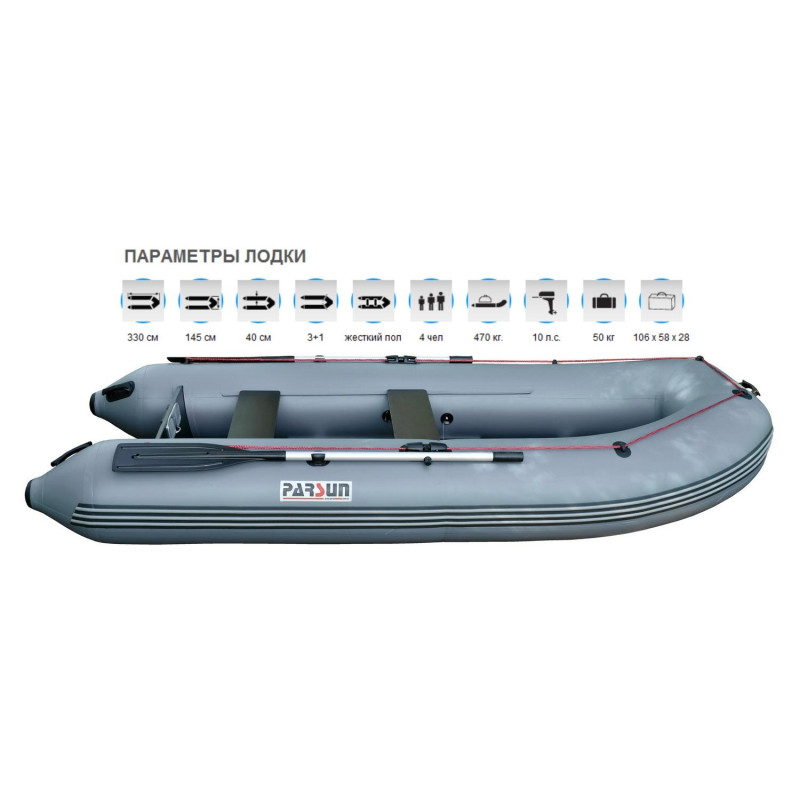 Надувная лодка Parsun 330E килевая серая купить по оптовой цене с доставкой в магазине Ellada.com.ua