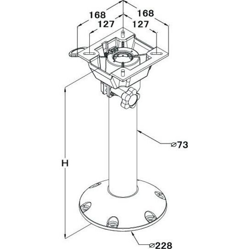 Основание для сиденья с высотой 330мм 184013Гладкий, толстостенный анодированный алюминий.Поворот на 360 градусов. Диаметр основания 23см.Диаметр трубы 73 мм.