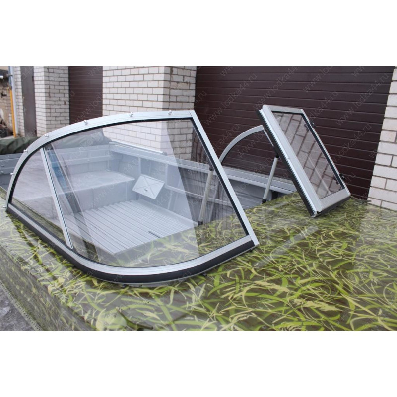 Ветровое стекло Днепр (Элит А) материал АКРИЛ Dnepr Elit KВетровое стекло «Элит-А»Ветровое стекло закругленной формы выполнено из системы алюминиевых профилей. Остекление выполнено из специализированного ударопрочного акрила толщиною 3 мм. Материал отличает высокая светопроницаемость, термостойкость, устойчивость к воздействиям окружающей среды, стойкость к растворителям, способность полирования.Конструкция ветрового стекла оснащена открываемой центральной секцией с демпферами-отбойниками и запорами калитки. Шарнирные упорные стойками обеспечивают жесткость конструкции рамы при любом угле установки стойки.В конструкции остекления использованы различные уплотнители, исключающие попадание воды.Комплект остекления включает специализированный уплотнитель для крепления к корпусу, комплект нержавеющего крепежа.Установка осуществляется в соответствии с инструкцией, поставляемой в комплекте.На продукцию предоставляется гарантия 1 год.