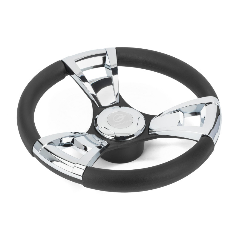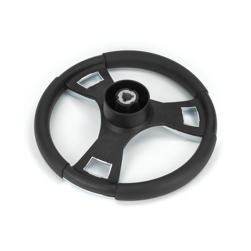 Характеристики:Тип изделия: рулевое колесоМатериал: пластик, стальДиаметр (мм): 350Цвет: глянец серебро