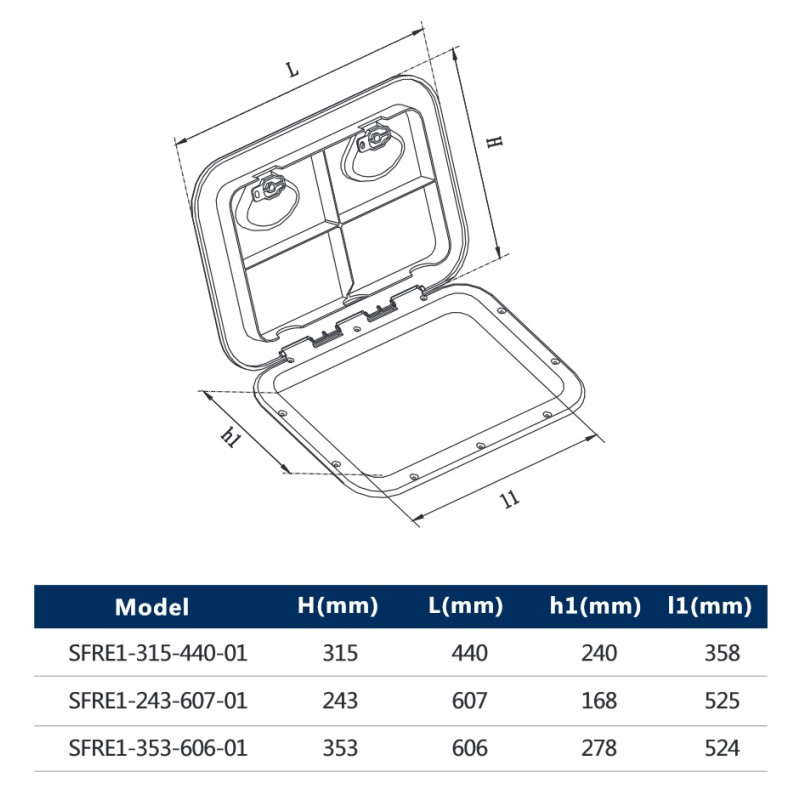 Люк доступа 607x243 Seaflo SFRE1-243-607-01Защита от ультрафиолетаПоворот на 180 градусовРезиновый уплотнитель
