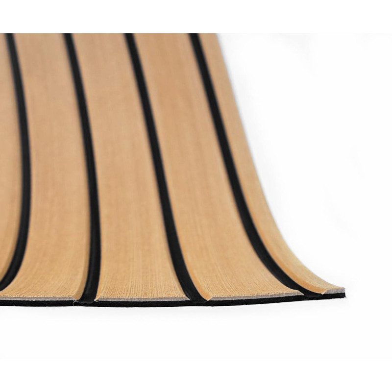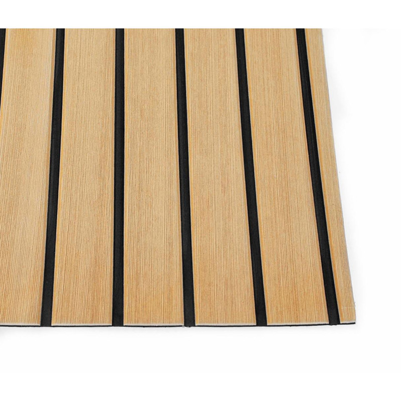 EVA искусcтвенный тик V-образные каналыРазмер листа: 230cm x 90cmТолщина: 6mmМатериалl: EVA— защита от ультрафиолета.— антискользящая поверхность.— не нагревается.— не впитывает жидкости.— легко моется.— задняя поверхность – липучка— не боится соленой воды