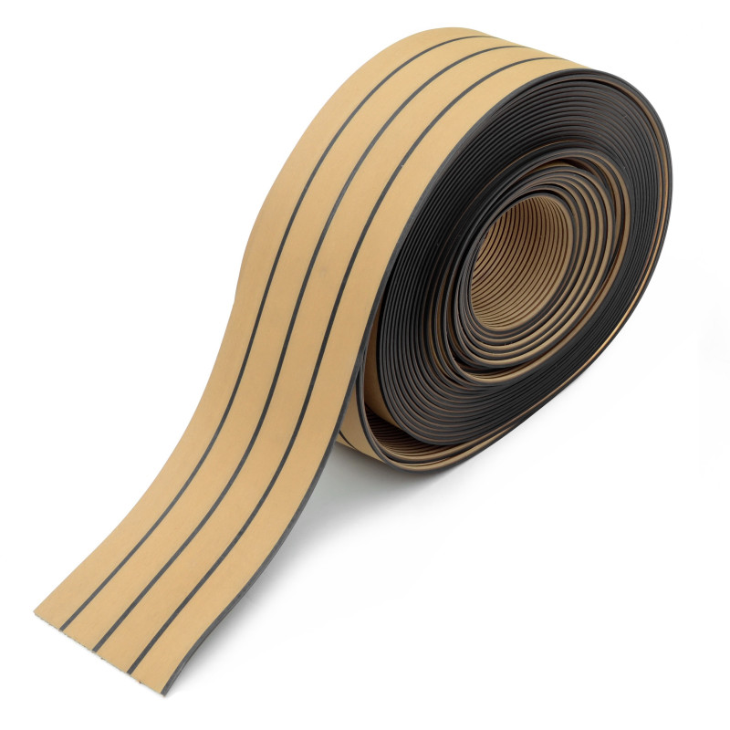 ПВХ Искусственный тик NKK цвет ТИК, черная полоса, 0,2х1м N9это полноценный ПВХ тик высокого качества, обладающий в отличии от EVA пластичностьюПокрытие палубы из искусственного тика — это не только имитация натурального дерева, но и весьма практичное решение. Пластичный материал прост в укладке, не требует особого ухода и сезонного нанесения тикового масла. При загрязнении достаточно зашлифовать мелкозернистой наждачной бумагой.Планка с 4-мя рейками 45мм и разделительными «проливочными полосами» черного цвета, по торцам материала находятся замки, которые подходят для большинства аналогов (Isiteek, Flexiteek, Breons и т.п.).цена за погонный метр