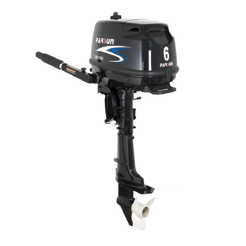 Описание мотора Parsun F6 BMSЧто особенного в моторах около 6 сил? Главная их особенность, что именно 5,5-6 л.с. лодочные моторы это самые недорогие моторы, которые способны вытолкнуть лодку на глиссер, что существенно прибавляет вам скорости (почти в два раза), и экономит топливо на 30%.Тех. характеристики F6:1) Выхлоп через винт — обеспечивает снижение шума и вибрации2) Спиралевидные шестерни коробки передач — более мощная, более тихая работа, может быть использована для более высокого передаточного числа, без снижения срока эксплуатации.3) Усиленная муфта механизма стартера, увеличивает продолжительность срока эксплуатации4) Ведущий вал снабжен b шарикоподшипником и роликовым подшипником, что увеличивает срок эксплуатации5) Мотор снабжен смотровым окном, для проверки уровня масла6) Перед карбюратором установлен дополнительный ручной насос подкачи, что обеспечивает быстрый запуск мотора после длительного хранения.7) Большой объем камеры сгорания 148 куб.см, к примеру Suzuki F6 — 138 куб. см8) Система принудительной смазки, мокрый картер, обеспечивает длительный срок эксплуатации9) CDI система зажигания обеспечивает легкий старт и низкий уровень холостого хода.прочие преимущества— большая ручка для переноса— простой в использовании механизм подъема и управления— встроенный топливный бак— система отсутствия протекания масла в трех положениях, облегчает хранение и транспортировку мотора. F6A BMТип двигателя4-тактный ,1-цилиндр, OHVОбъем148 куб.смДиаметр х Ход поршня, мм (дюйм)64.0 x 46.0 (2.52 x 1.8)Максимальная мощность кВт (л.с.)4,4 (6)Макс. частота вращения4500 ~ 5500Система зажиганияCDIЗапускРучнойСистема управленияРумпельПереключение передачВперед-Нейтральная-ЗадняяПередаточное число2,08 (27/13) Трим и система наклонаРучной, 4 позиции / мелководьеЕмкость топливного бакавстроенный 1,3 лОбъем моторного масла0,6 лОбъем масла трансмиссии100ccСухой вес, дейдвуд S27кг (S) Общая ширина, мм (дюйм)390 (15,4)Рекомендуемая высота транца381 мм (15 дюймов)Мощность генератора12 ВВинт3-7.8 «x9»