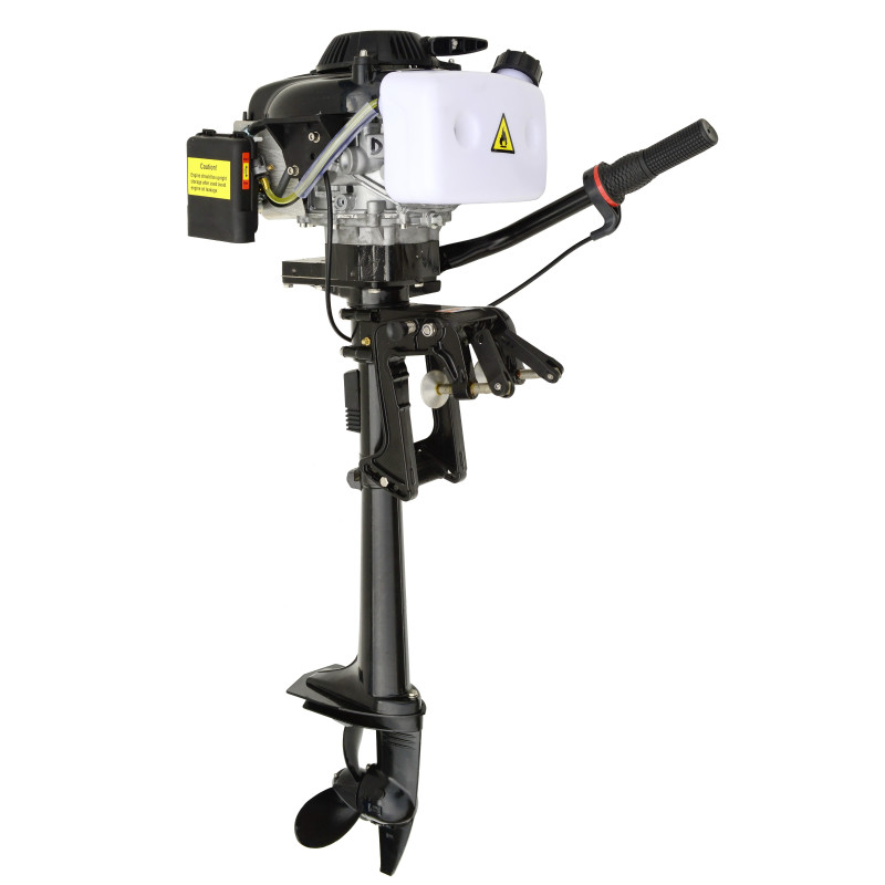 Мотор Шмель 3,6л.с. 4-х тактный, гарантия 1 годЧетырехтактный лодочный мотор Шмель F3.6HP воздушного охлаждения, имеет трансмиссию, аналогичную Шмель 1,7л.с.. Управление дроссельной заслонкой осуществляется ручкой газа, которая находится на румпеле и имеет ступенчатый фиксатор положения. Движение задним ходом осуществляется разворотом мотора на 180.Основное преимущество малый вес и невысокая цена, а также возможность передвижения в грязной воде. Очень низкий расход топлива. И удивительно малый шум для мотора с воздушным охлаждением.Технические характеристикиТип двигателя4-х тактный одноцилиндровый воздушного охлажденияВысота дейдвуда (м)0.42Транец лодки (м)0.38-0.40Сухой вес (кг)9.8Максимальная мощность (кВт/лс)2.6/3.6Размеры (длина, ширина, высота) (мм)920х380х240Размеры упаковки (длина, ширина, высота) (мм)960х450х320Объем двигателя (см3)56.0Обороты максимальной мощности ( об/мин)5500Главная передача2.08Диаметр цилиндра/ход поршня (мм)44х40Включение передачЦентробежное сцеплениеСистема управленияРумпельСистема зажиганияCDiВстроенный топливный бак (л)1.8Дополнительный топливный бак (л)—СтартРучнойРекомендуемый шаг винта5,6Рекомендуемый сорт топлива92 неэтилированный (масло заливается отдельно)Рекомендуемый сорт трансмиссионного маслаSAE80W90Система смазки двигателякартерВес брутто (кг)12.5
