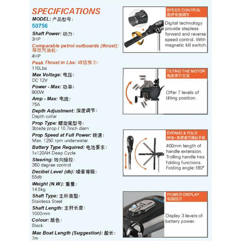 Электромотор Haswing Protruar 3 л.с. 50756 110Lbs 12В (рекомендации аккум. 150Ah)Protruar оснащен бесщеточным двигателем 3,0 / 12 В и отлично подходит дляширокого спектра лодок оснащенных 12 вольтовой системой питания. Этот мощный мотор оснащенс бесступенчатой регулировкой скорости и чекой безопасности. Мотор может легконаклоняться, плюс высота транца легко регулируется с помощью быстрого замка,так что вы можете двигаться практически в любой глубине воды. Модель Protruar также имеет светодиодиндикатор уровня заряда батареи. Подходит как для соленой, так и для пресной воды. Гарантия 2 года.