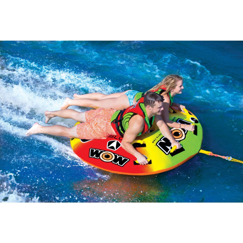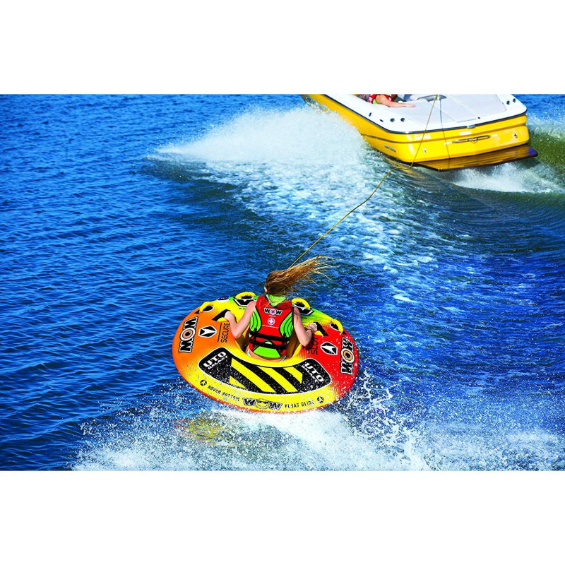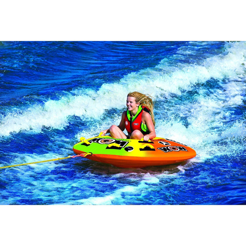 Буксируемый баллон (Плюшка) UTO GALAXY 1-2 Ркод товара 18-1080UTO Galaxy Галактика UTO вне этого мира. Идеально подходит для буксировки, если вы хотите, чтобы ваши друзья думали, что вы с другой планеты. Эта плюшка является гибридом; частично плоским и частично седельным буксиром с парящим днищем, чтобы быстро скользить на нем воде с небольшим сопротивлением. Один человек может перемещаться на этом тюбе, сидя в центре, в нише, или вы можете посадить двух ездоков, как на традиционный плоский буксир. Благодаря универсальности создается впечатление, что вы получаете 2 буксира по цене 1! 1-2 райдера общий максимальный вес 154kg.Плоский буксир HI-Performance с новой конструкцией днища HOVER BOTTOM, которая позволяет буксиру плавать, скользить и прыгать по воде.Полный нейлоновый чехол с прочными молниямиСверхмощный ПВХ баллонДвойные ручки из пенопластовой ленты с защитой пальцевПена EVA для комфортного сиденияКрышки клапанов на молнииСверхмощный формованный буксирный соединитель EZ включен для быстрого соединения с буксирным тросомСкоростные клапаны для быстрого надувания и дефляции1 год гарантииРазмеры накачанного буксира диаметр 152 см