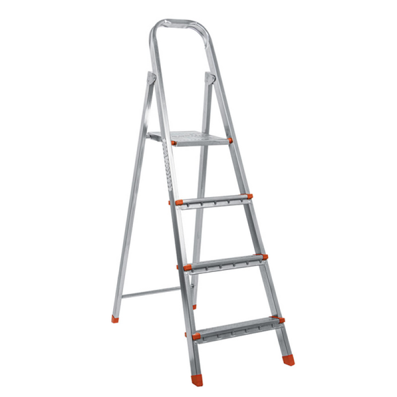 Budfix BF504 Стремянка металлическая 4 ступени Универсальная стремянка из прочного алюминиевого сплава, антикоррозийная обработка металла противостоит развитию ржавчины в случае контакта с влагой, что продлевает срок службы конструкции и говорит о её высокой надежности и устойчивости. Практичная, удобная и простая в использовании, состоит из 4 ступенек, что обеспечивает рабочую высоту 2,53 м для выполнения разных бытовых задач, не скользит на бетоне, плитке и других поверхностях за счет противоскользящих накладок на стойках.