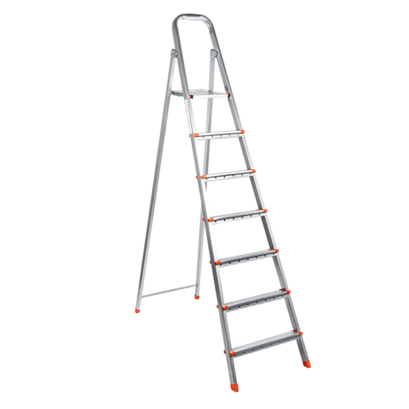 Budfix BF507 Стремянка металлическая 7 ступеней Универсальная стремянка из прочного алюминиевого сплава, антикоррозийная обработка металла противостоит развитию ржавчины в случае контакта с влагой, что продлевает срок службы конструкции и говорит о её высокой надежности и устойчивости. Практичная, удобная и простая в использовании, состоит из 7 ступенек, что обеспечивает рабочую высоту 3,23 м для выполнения разных бытовых задач, не скользит на бетоне, плитке и других поверхностях за счет противоскользящих накладок на стойках.Высокая степень безопасности – острые края обработаны защитными колпачками.