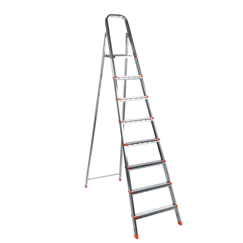 Budfix BF508 Стремянка металлическая 8 ступеней Универсальная стремянка из прочного алюминиевого сплава, антикоррозийная обработка металла противостоит развитию ржавчины в случае контакта с влагой, что продлевает срок службы конструкции и говорит о её высокой надежности и устойчивости. Практичная, удобная и простая в использовании, состоит из 8 ступенек, что обеспечивает рабочую высоту 3,46 м для выполнения разных бытовых задач, не скользит на бетоне, плитке и других поверхностях за счет противоскользящих накладок на стойках.