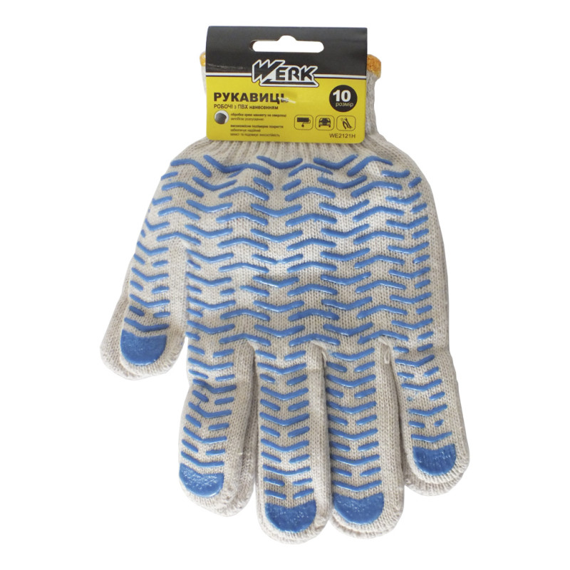 (WE2121H) Рукавички ХБ натур., синя "хвиля" WERK з підв. купить по оптовой цене с доставкой в магазине Ellada.com.ua