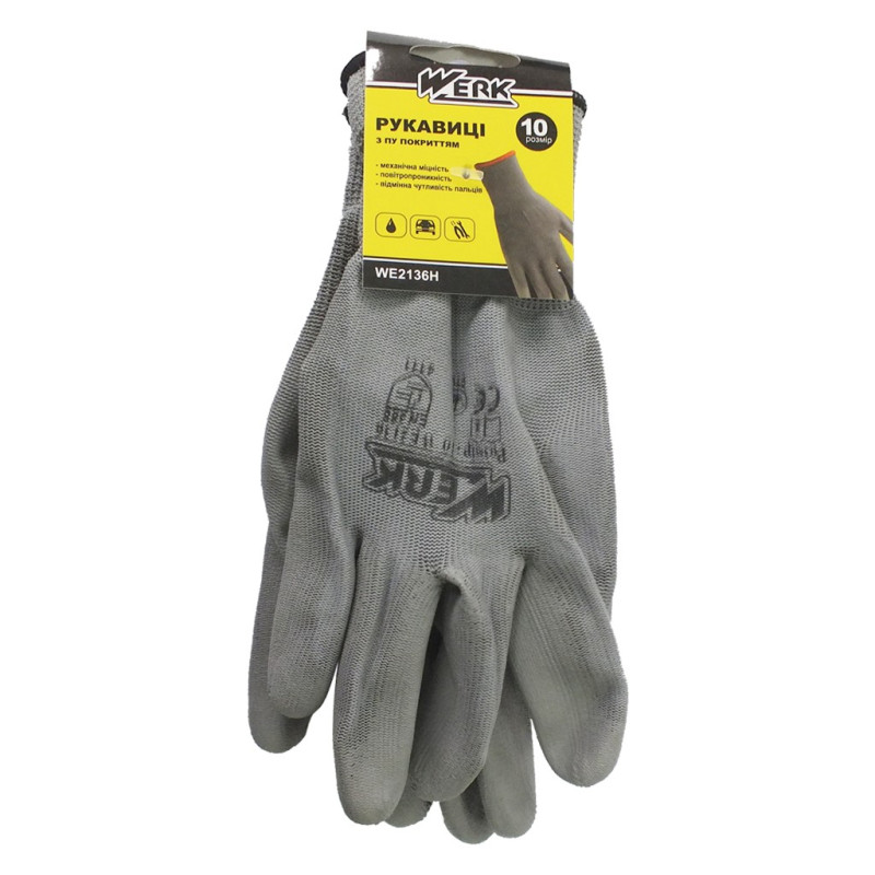 (WE2136H) Рукавички трикотажнi ПЕ, сірий колiр, ПУ покр. 10р. WERK з підв купить по оптовой цене с доставкой в магазине Ellada.com.ua
