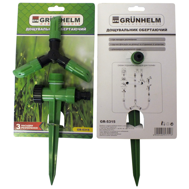 РАЗБРЫЗГИВАТЕЛЬ ВРАЩАЮЩИЙСЯ - GR-5315 (3 насадки) (GRUNHELM) купить по оптовой цене с доставкой в магазине Ellada.com.ua
