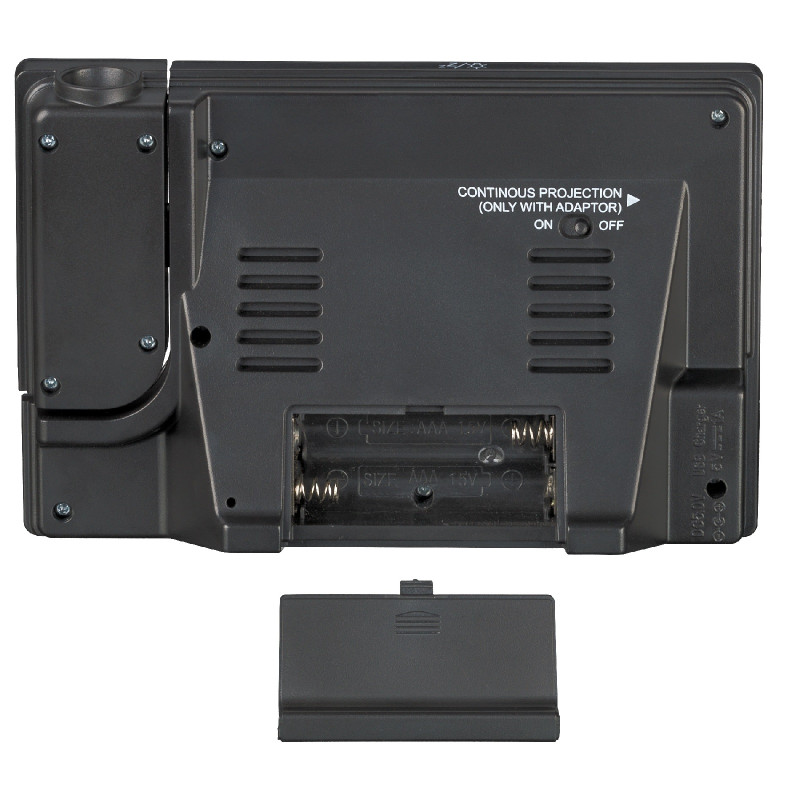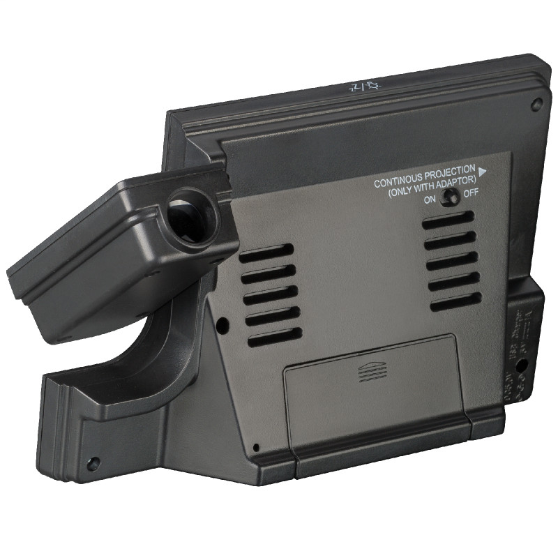 Цифровая проекция на стену или потолок текущего времени или времени/температуры Высокоточные радиоуправляемые часы (DCF77 сигнал) с часовым поясом и возможностью ручной настройки Два будильника