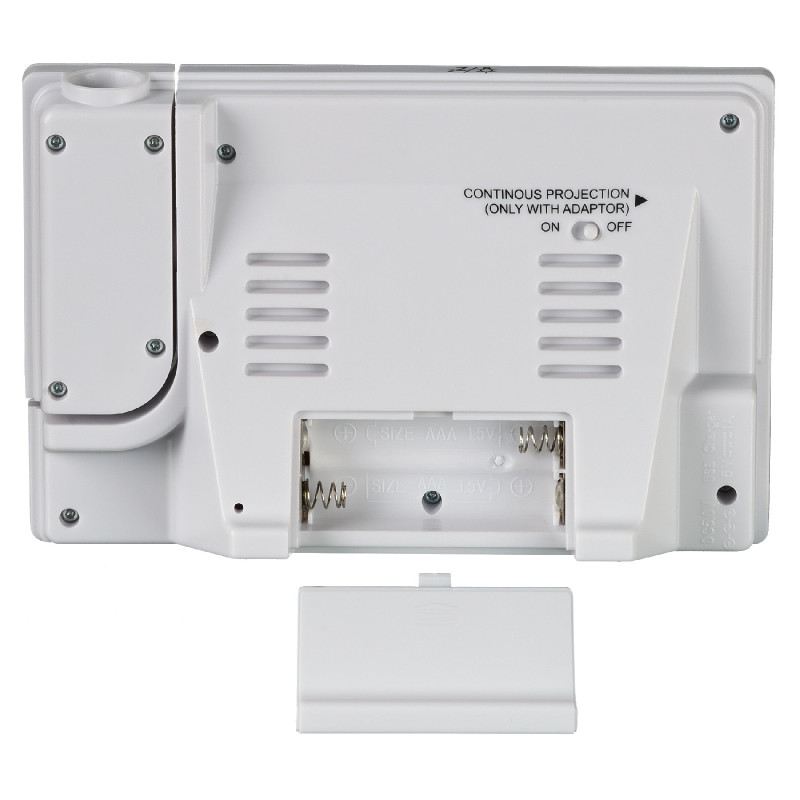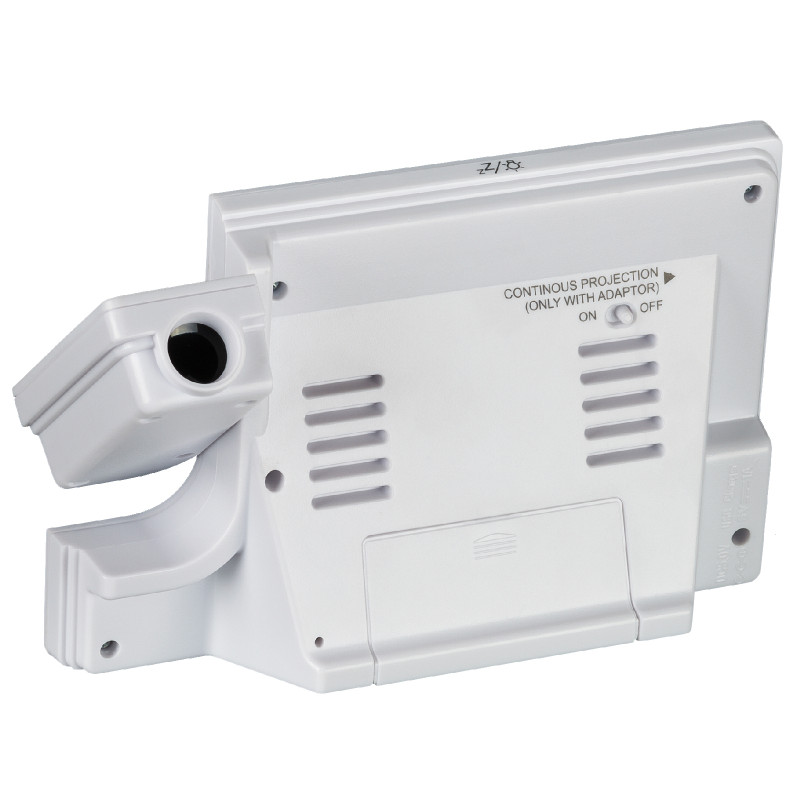 Цифровая проекция на стену или потолок текущего времени или времени/температуры Высокоточные радиоуправляемые часы (DCF77 сигнал) с часовым поясом и возможностью ручной настройки Два будильника