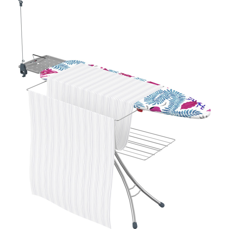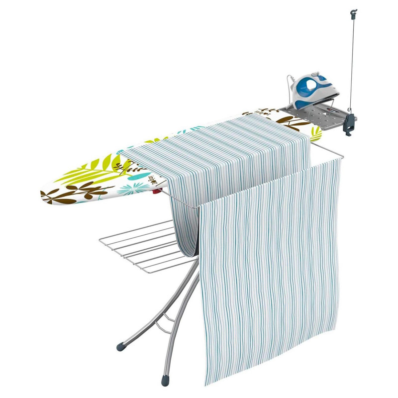 Підставка для парогенератора<br />Тримач проводу<br />Регулювання за висотою<br />Полиця для білизни<br />Підставка для праски<br />Основа з металевою сіткою