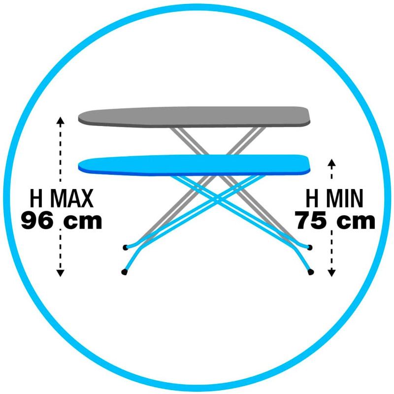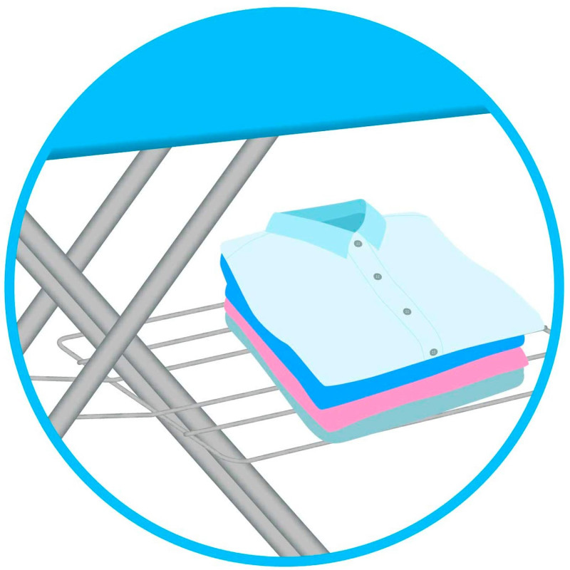 Тримач проводу<br />Регулювання за висотою<br />Полиця для білизни<br />Підставка для праски<br />Основа з металевою сіткою