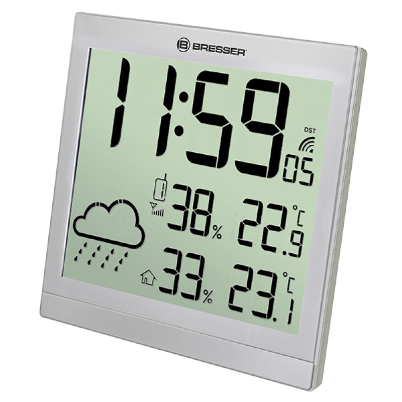 Метеостанция Bresser TemeoTrend JC silver отображает прогноз на ближайшие часы. Эта погодная станция даёт представление о таких важных климатических параметрах, как температура и влажность. Важно, что все эти данные метеостанция фиксирует как в помещении, так и на улице, а возможность подключения до трёх датчиков позволяет охватить довольно широкую площадь для измерения данных.