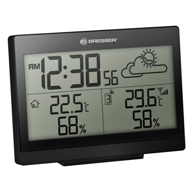 Метеостанция Bresser TemeoTrend LG отображает прогноз на ближайшие часы. Эта погодная станция даёт представление о таких важных климатических параметрах, как температура и влажность. Важно, что все эти данные метеостанция фиксирует как в помещении, так и на улице, а возможность подключения до трёх датчиков позволяет охватить довольно широкую площадь для измерения данных.