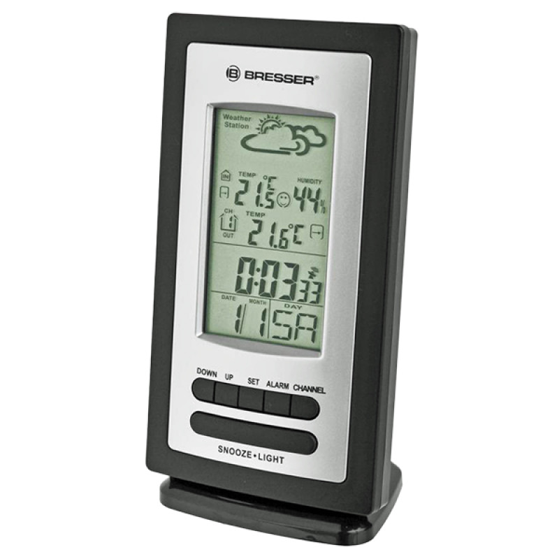 Метеостанция с выносным беспроводным датчиком, символьным прогнозом погоды, отображением температуры и влажности.